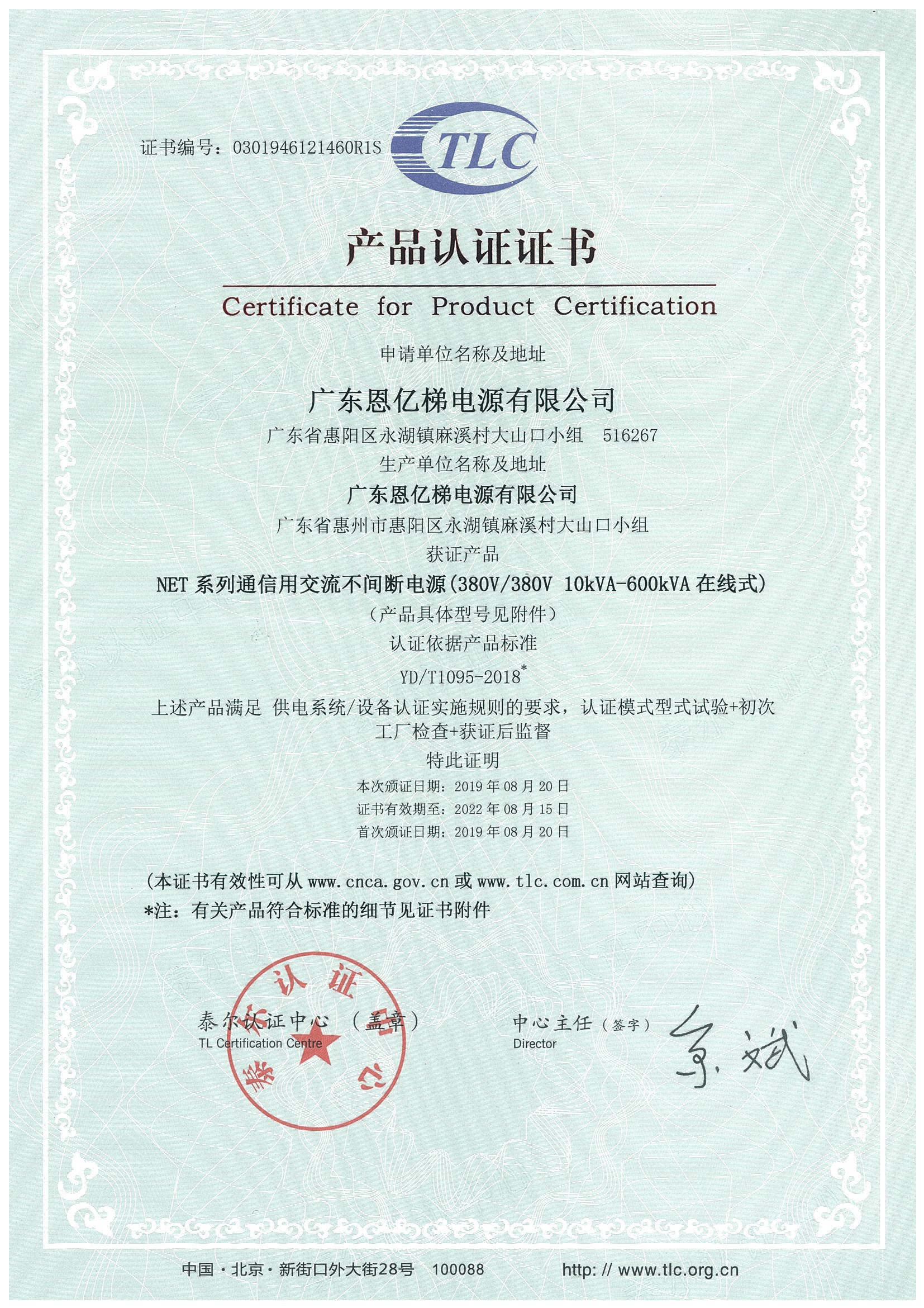 泰爾認證(不間斷電源三進三出)