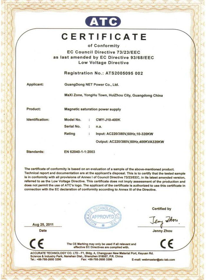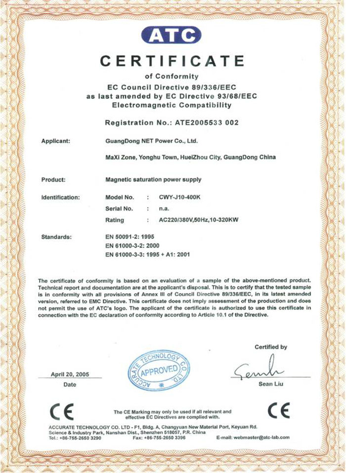 CE認證(參數穩壓電源)